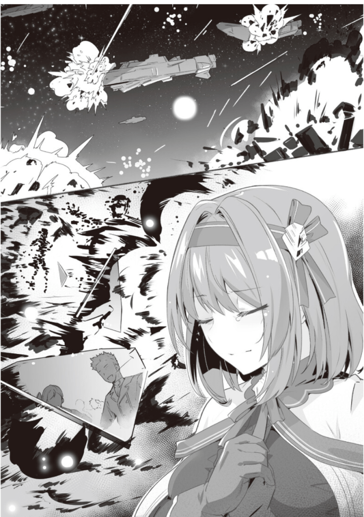 “It’s impossible for us to continue the fight. Contact the flagship. [Dispatch, Destroyer No.1 to, flagship. We are engaged with 10 times the enemy ship. We are not yet surrounded, and can leave the system while drawing enemies away. There is a high possibility that the evidence of set up by the Coalition side can be brought back to the home sector. Request instructions].”