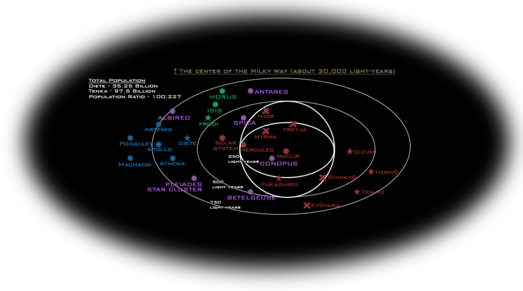 2823 A.D. – Settled in the Diete Star System. 180 light-years away.